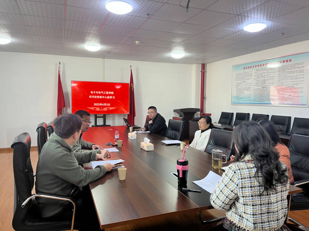 4月3日上午,电子与电气工程学院党委中心组在崇真楼南楼5033会议室召开四月份政治理论学习会,专题学习《中央八项规定及其实施细则精神》,全体班子成员参会,会议由张红鑫领学并作主题发言。