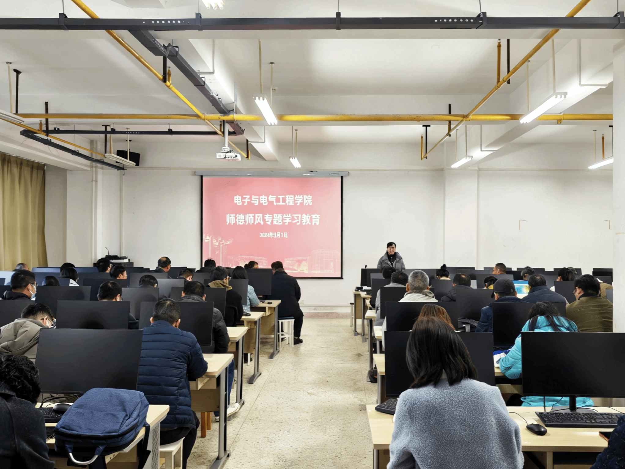 为进一步强化教职工师德师风意识,筑牢立德树人思想根基,3月1日下午,电子与电气工程学院在阳光校区崇真楼(南)4046室召开师德师风专题学习教育会。学院党委书记张红鑫主持并领学,领导班子全体成员及全体教职工参加学习。
