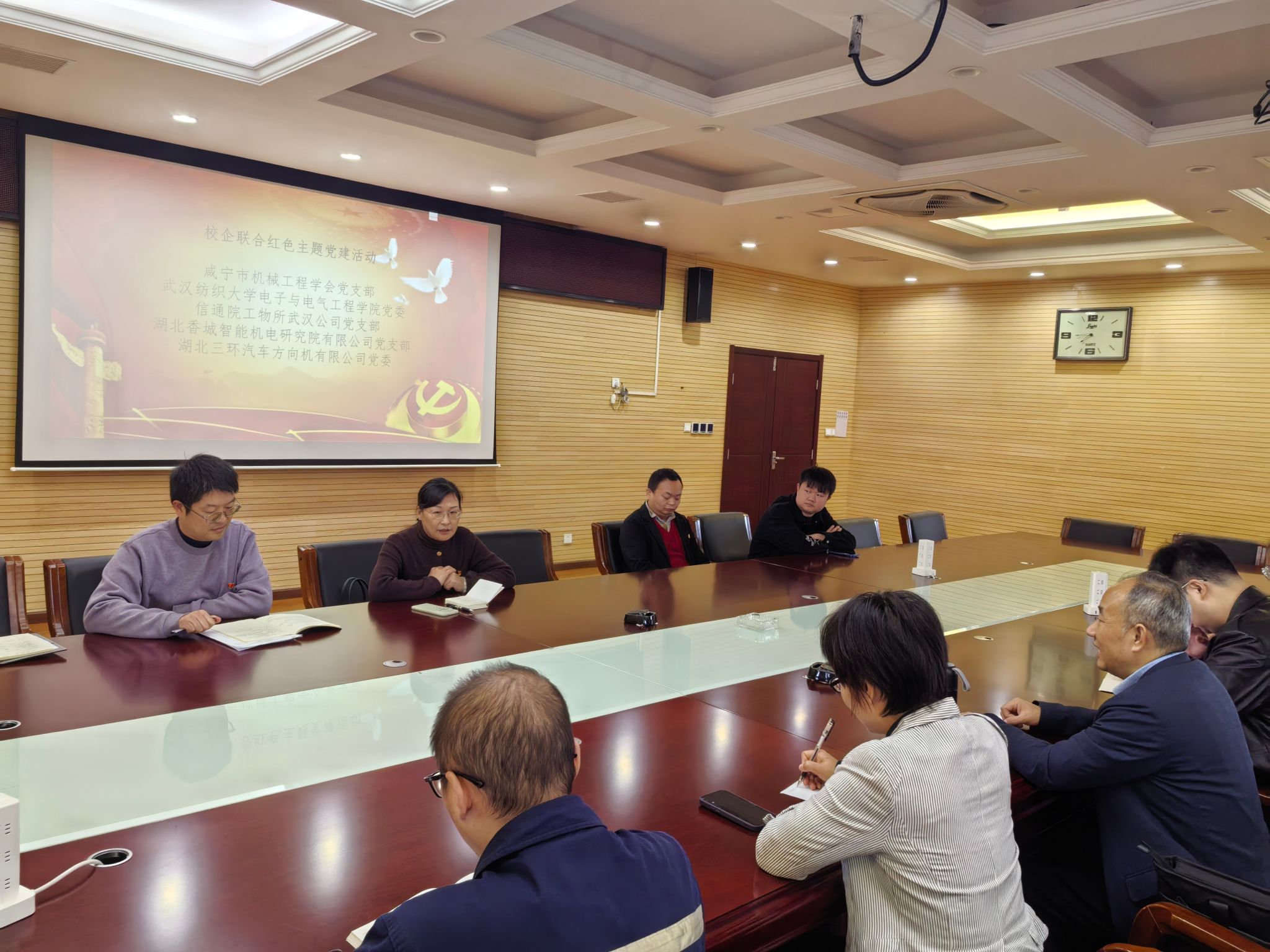 11月14日,电子与电气工程学院党委与咸宁市机械工程学会党支部、湖北三环汽车方向机有限公司党委、信通院工物所武汉公司党支部、湖北香城智能机电研究院有限公司党支部组织开展校企联合党建活动。各企业负责人,学院党委书记张红鑫,教师党员代表共同参会。