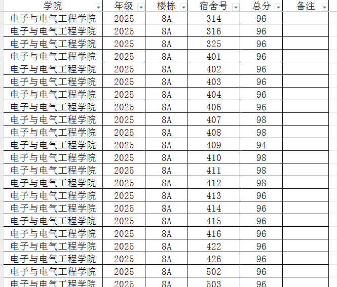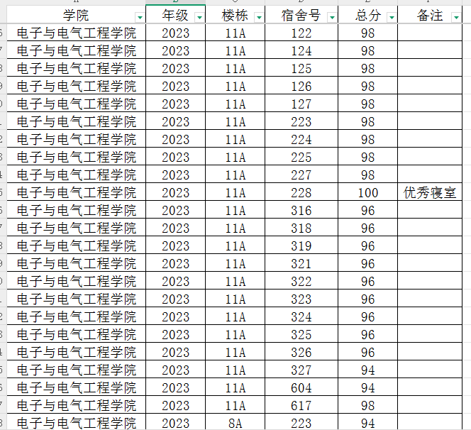 根据统一安排,现将学院本学期第6周寝室公检情况公布如下:
