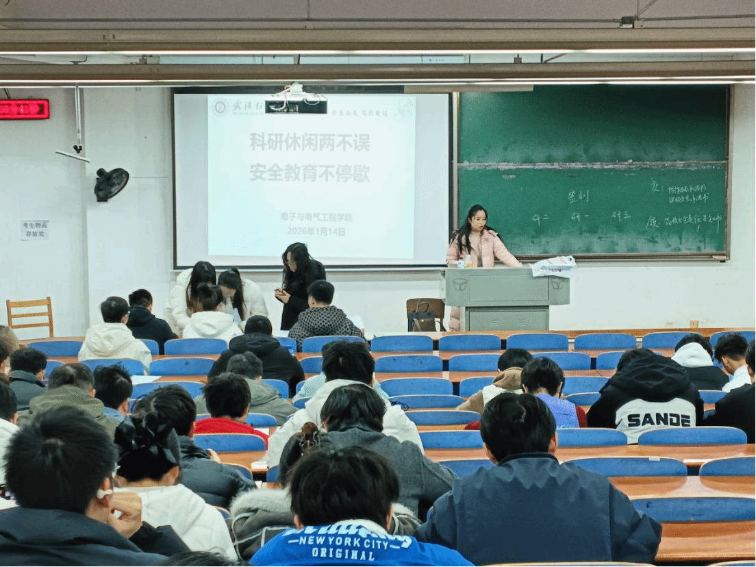 为做好假期安全教育与科研生活指导工作,切实增强研究生的安全防范意识,确保全体研究生度过一个安全、充实的假期,1月14日下午,电子与电气工程学院在3号教学楼T102教室开展寒假安全教育大会,全体研究生参会,会议由辅导员彭斯主持。