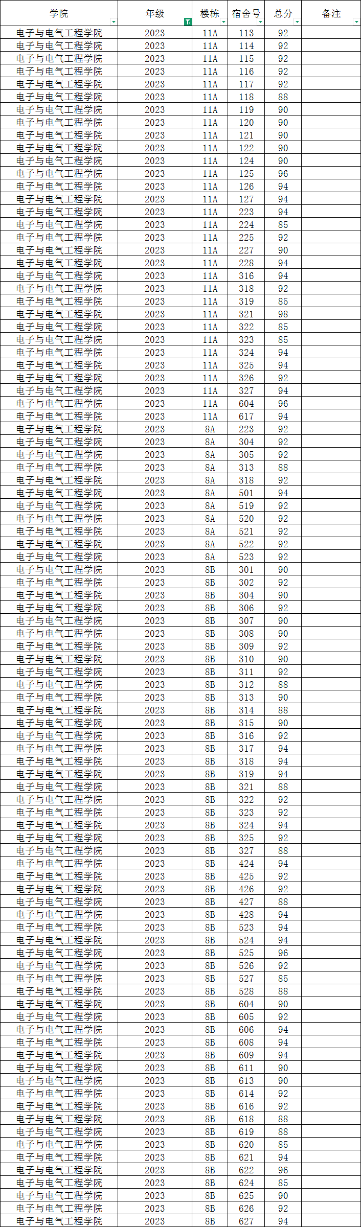 根据统一安排,现将学院本学期第3周寝室公检情况公布如下