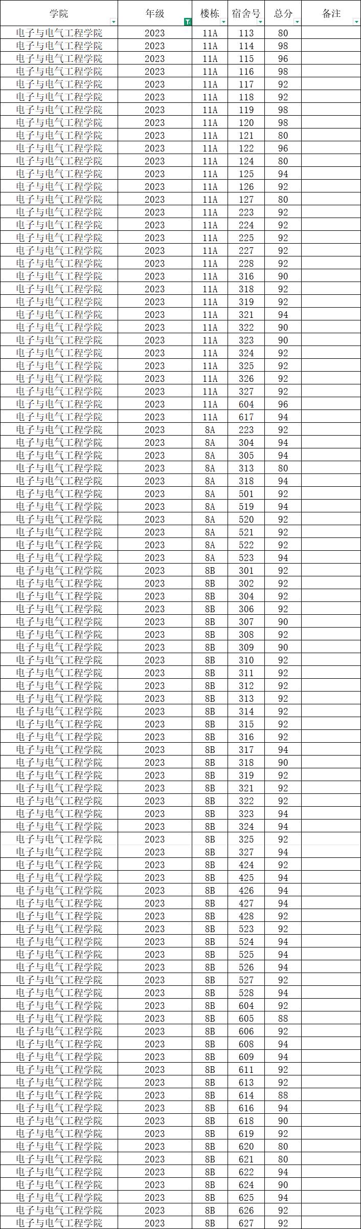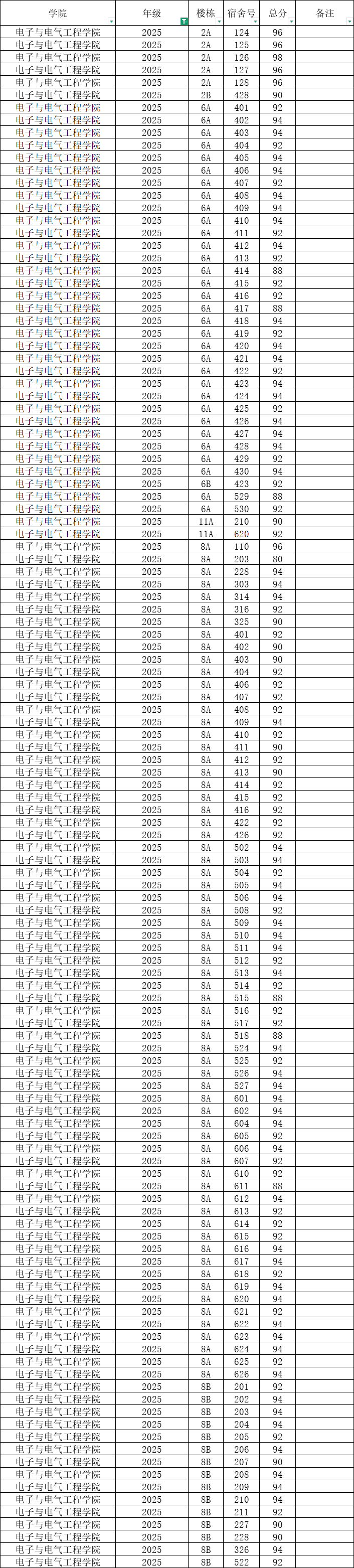 根据统一安排,现将学院本学期第4周寝室公检情况公布如下